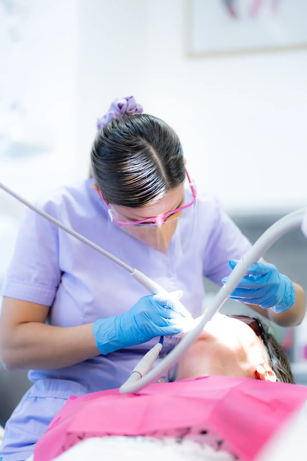 - manuálneho odstránenia zvyšného zubného kameňa,
